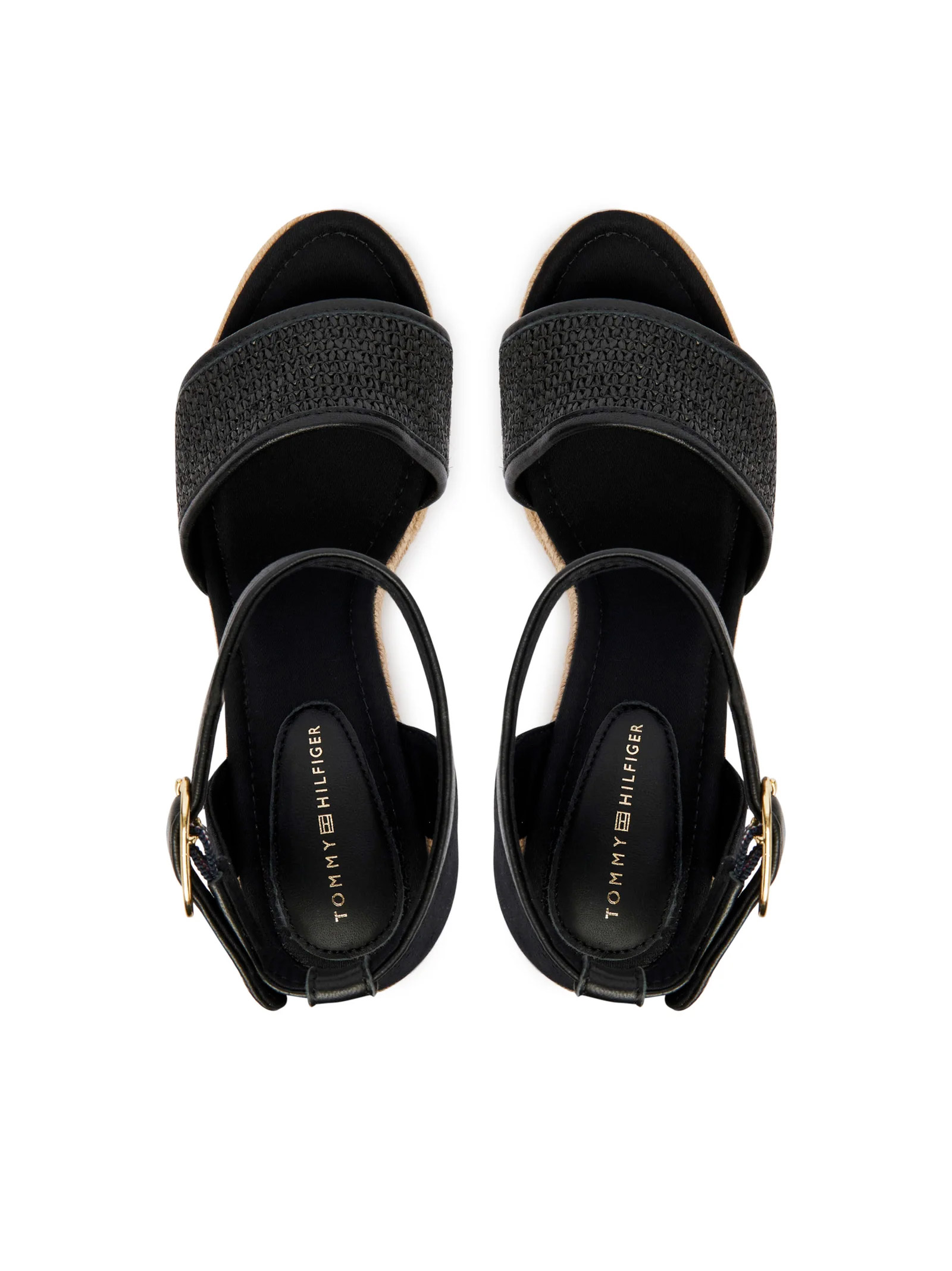 Questi Sandali alte sono bilanciate da un robusto tacco a zeppa e da un cinturino sicuro alla caviglia, mentre le finiture in rafia e juta aggiungono un tocco di texture.