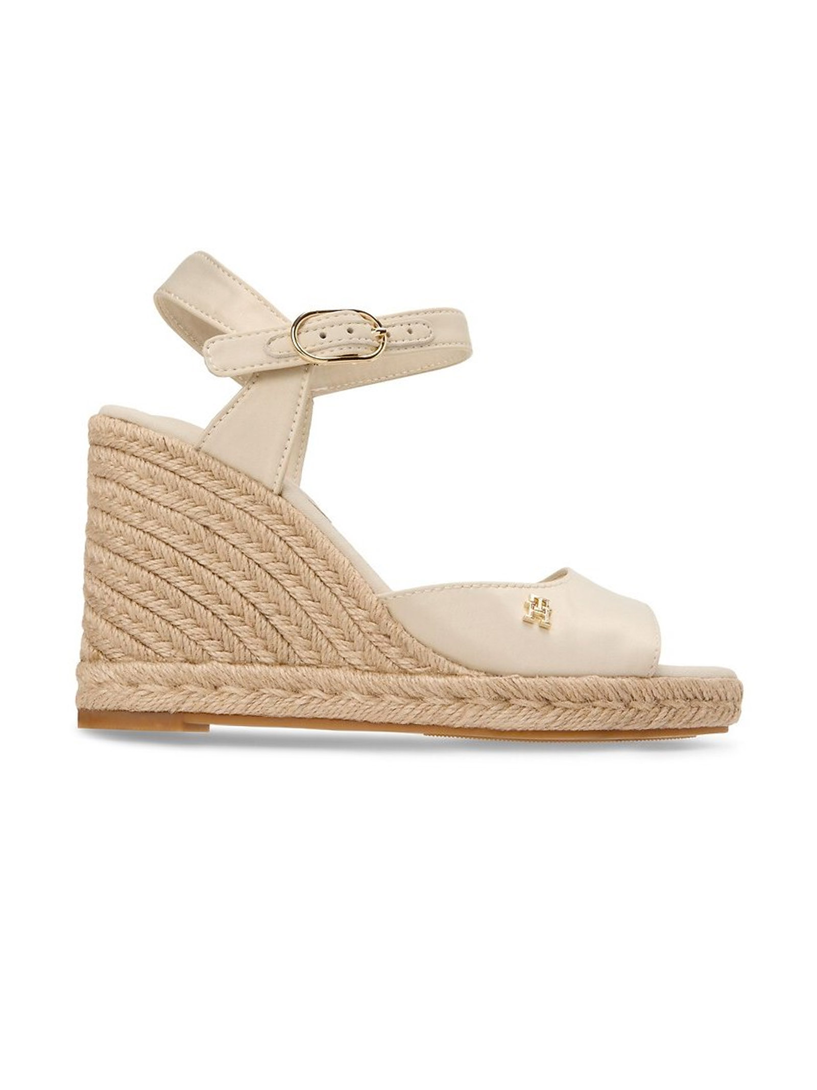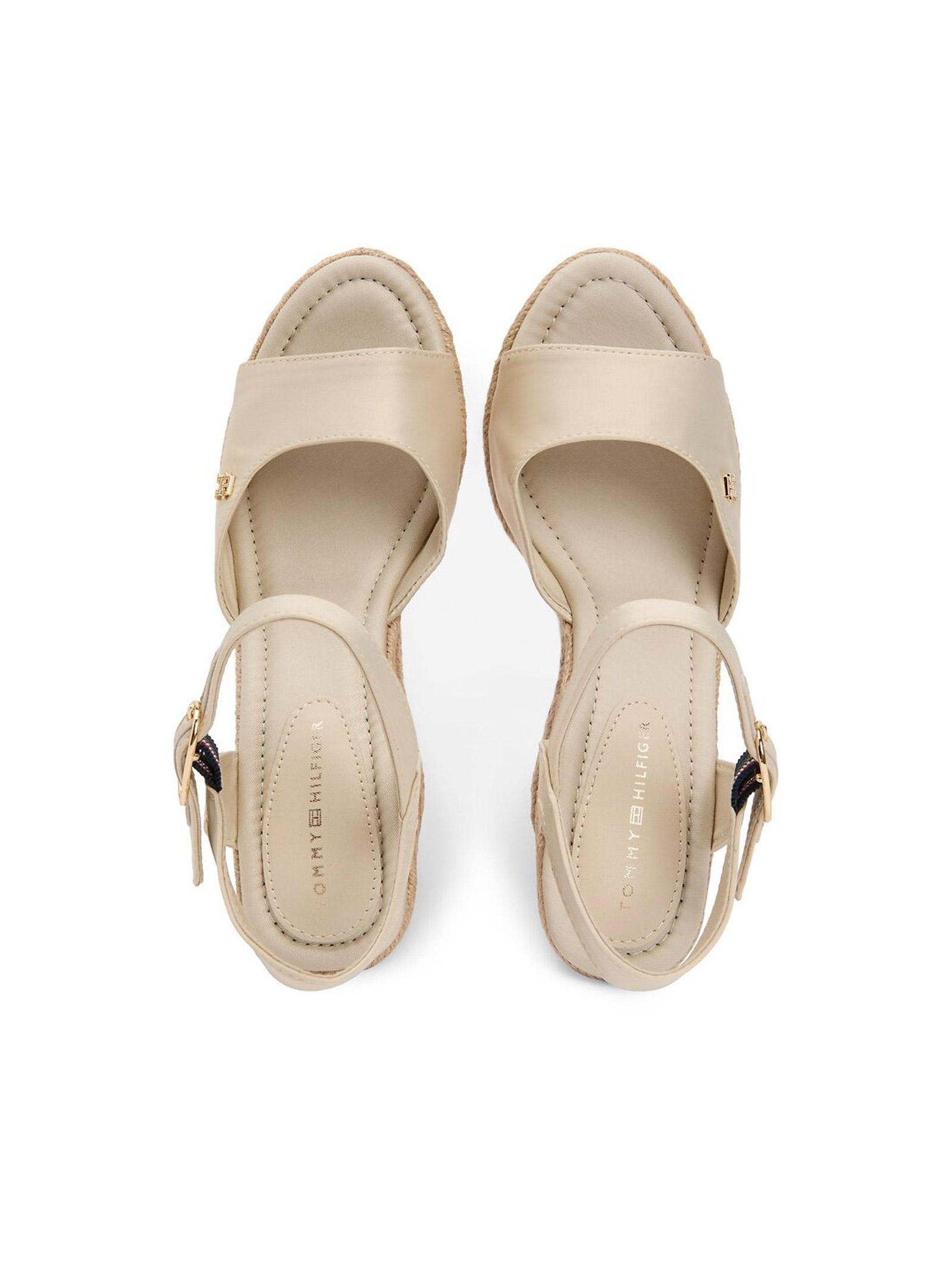 I Sandali a espadrillas in raso con plateau in juta, decorate dal monogramma TH sulla fascia, sono l'icona di stile che ti accompagna durante la bella stagione.