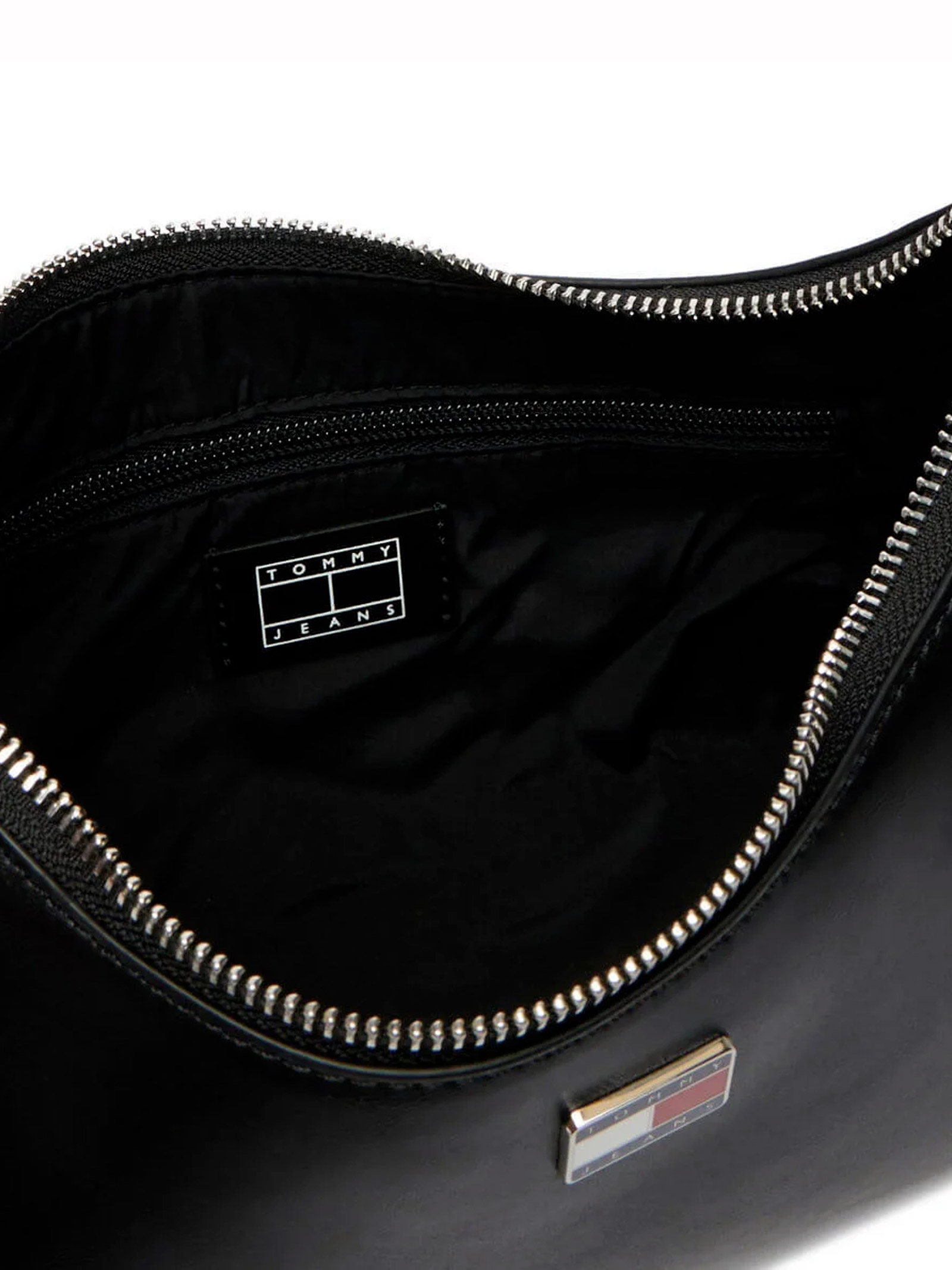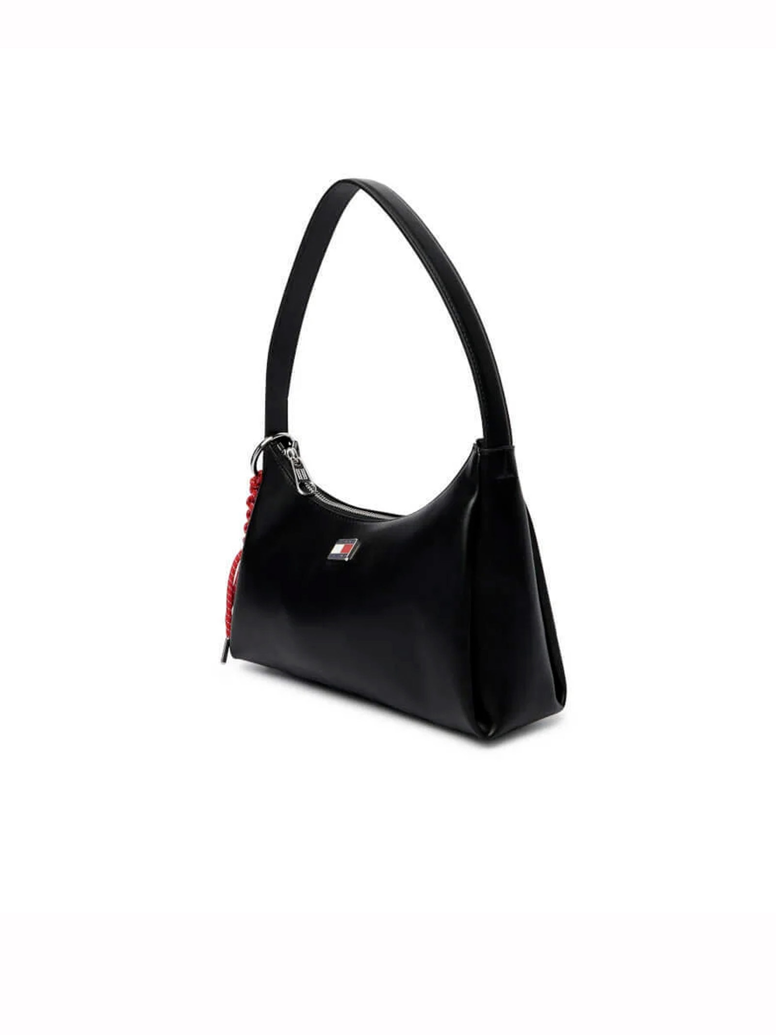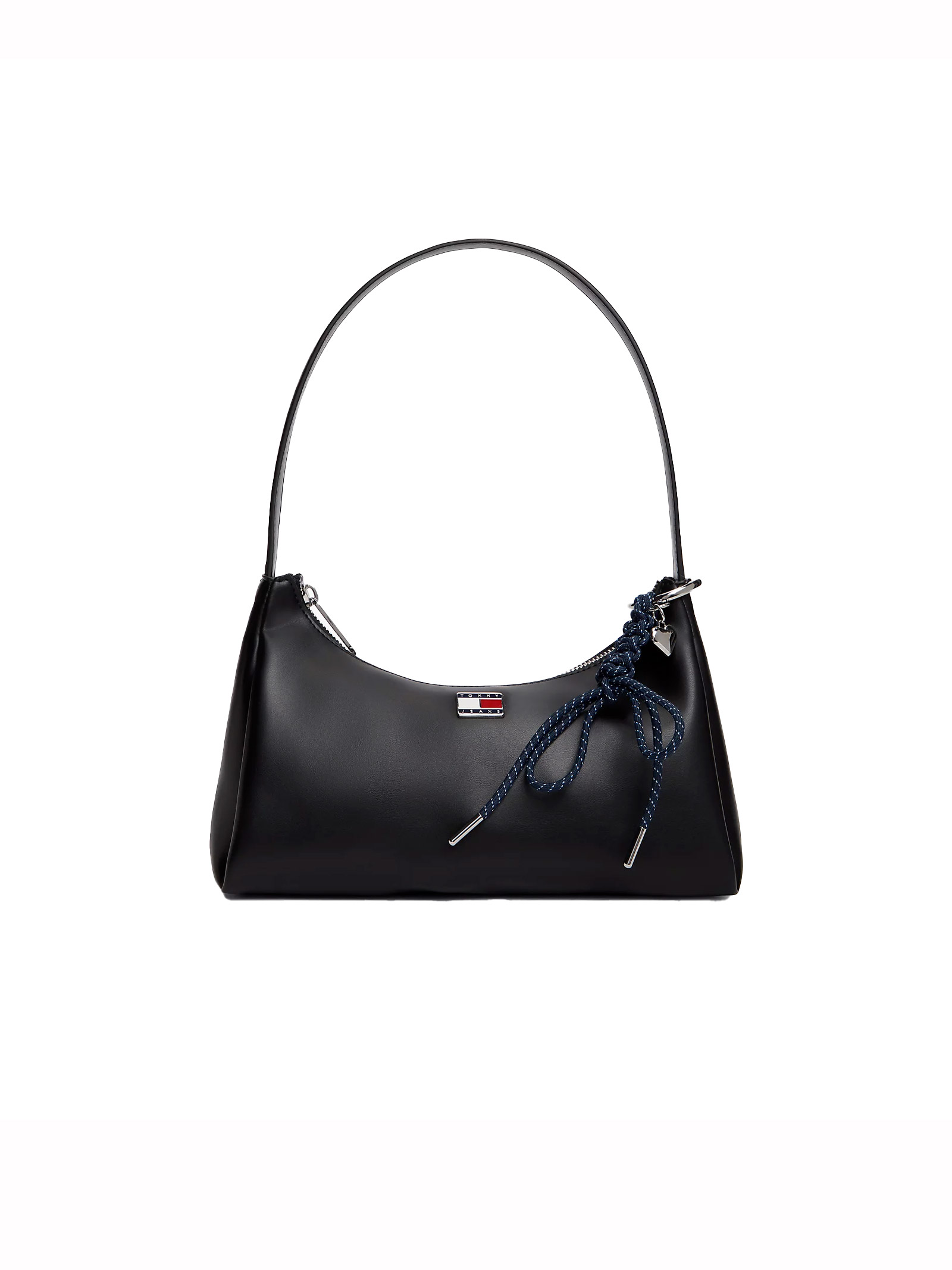 Un ciondolo con un cuore in metallo e una corda intrecciata da esterno aggiunge un tocco giocoso all'estetica minimalista di questa borsa a tracolla.