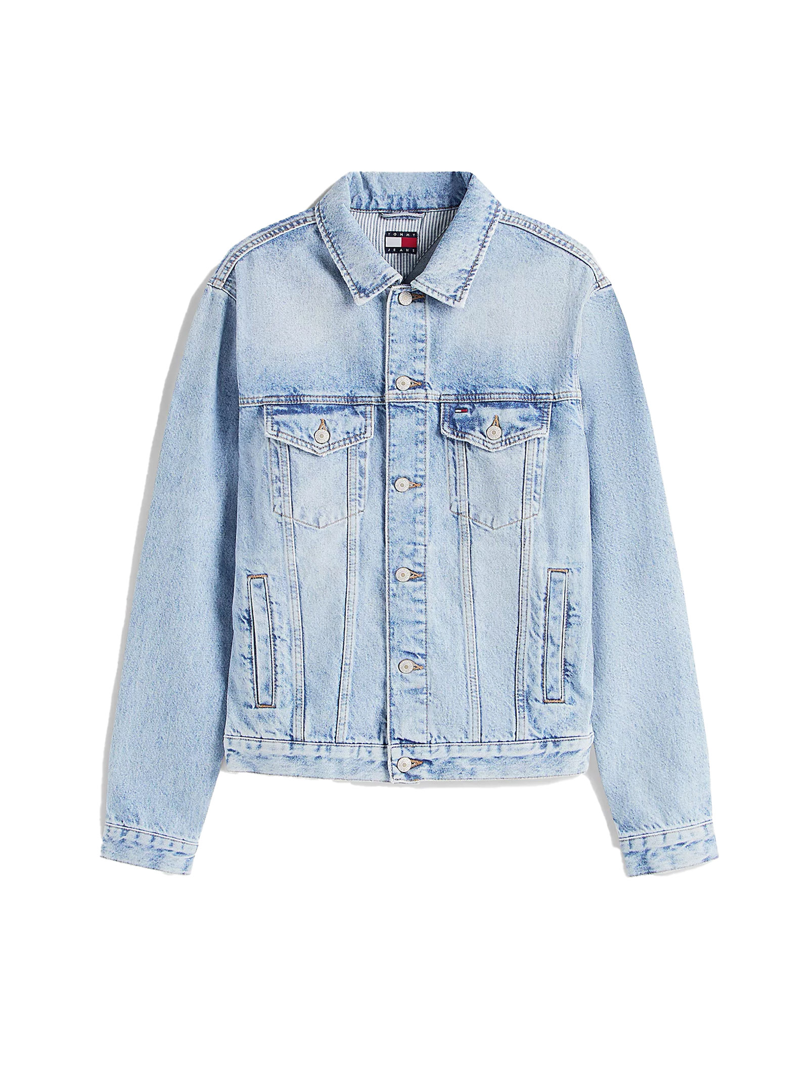 La giacca trucker in denim aggiunge una nota vintage ai tuoi outfit, merito delle classiche tasche applicate sul petto e del logo color block sul retro.
